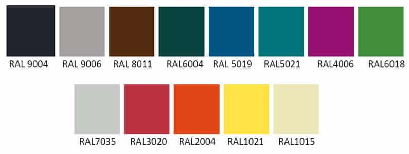 Grille-chaussures en tubes d’acier de 13 mm de diamètre. Toutes les pièces métallique sont recouvert de la peinture époxy (voir nuancier)