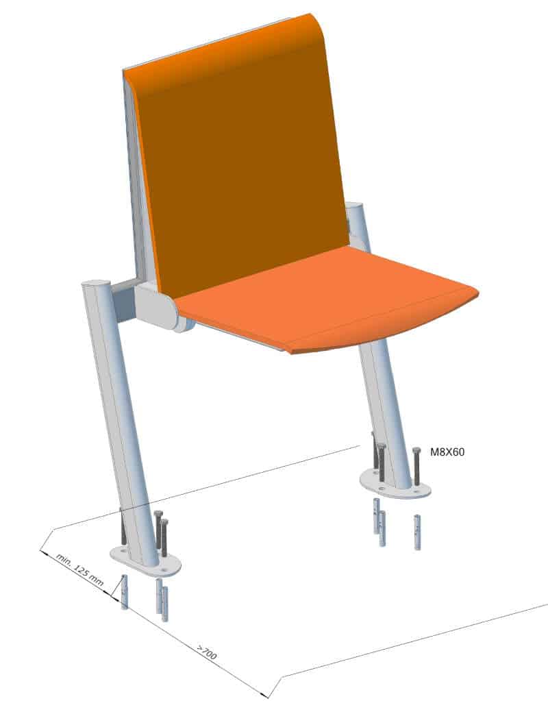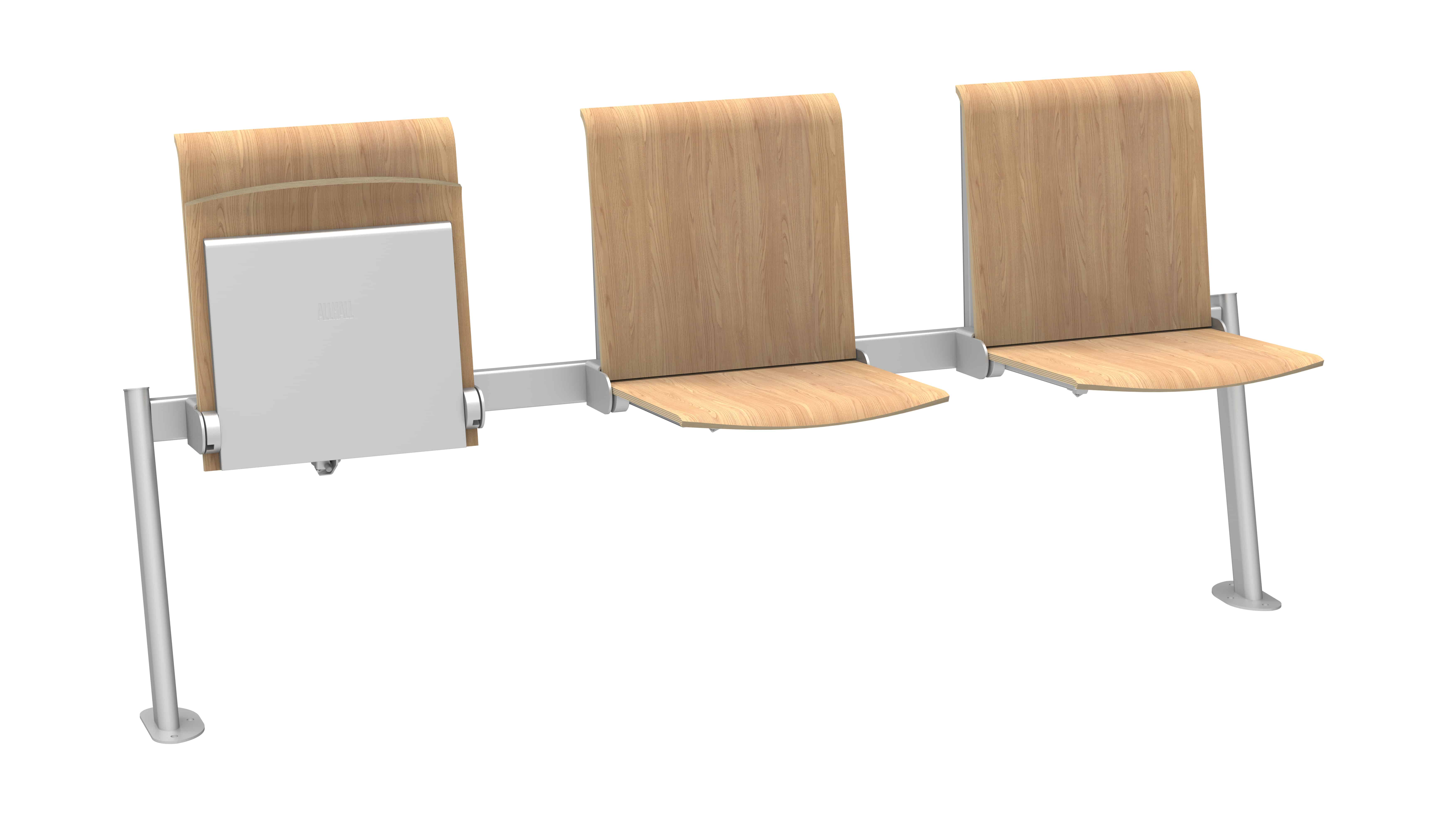 Idéal pour les espaces (salle d’attente, hall, couloirs…) où la place manque et le silence est souhaité, car les sièges sont fixés sol et repliés ne prennent que 20 cm de profondeur. Nettoyage au sol devient facile, sans devoir déplacer et replacer les sièges.