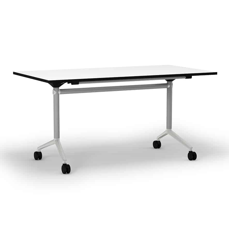 Le plateau est rabattable par un simple déclic à une main, une fois à la verticale, vous positionnez les tables où vous voulez, car elles sont sur roulettes solides, orientables et freinées si besoin est.