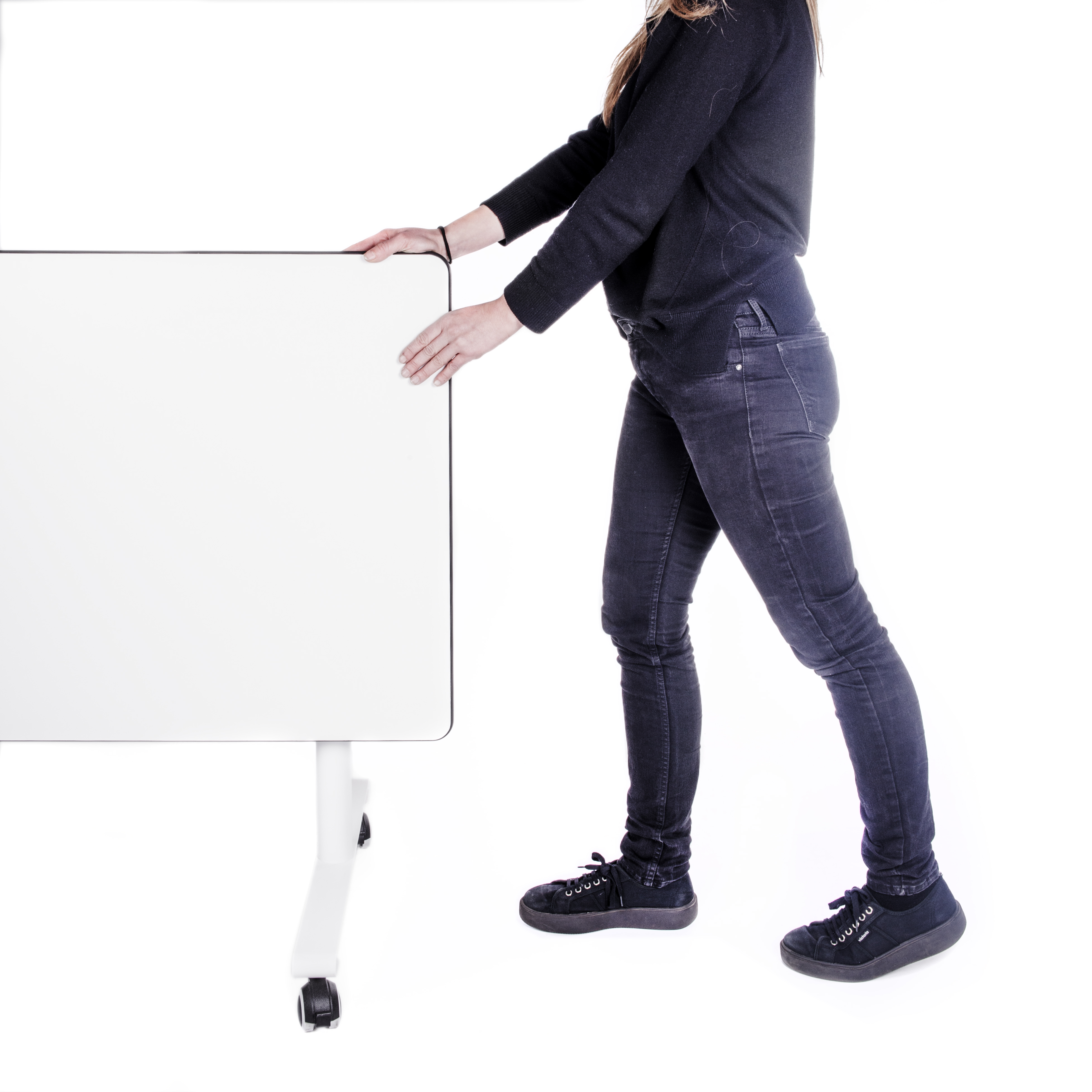 Plateau en MDF couleur blanc, 20 mm d’épaisseur, bords en polyuréthane coulé noir (3 mm d’épaisseur), inarrachable.