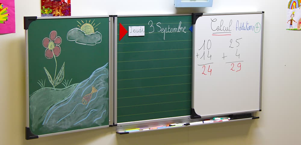 Panneau central avec lignage 5 cm pour aider les enfants à écrire. Dimension (Ht x lg en cm) : 60 x 100 cm