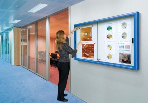 Vitrines d’affichage portes coulissantes à crémaillère.
